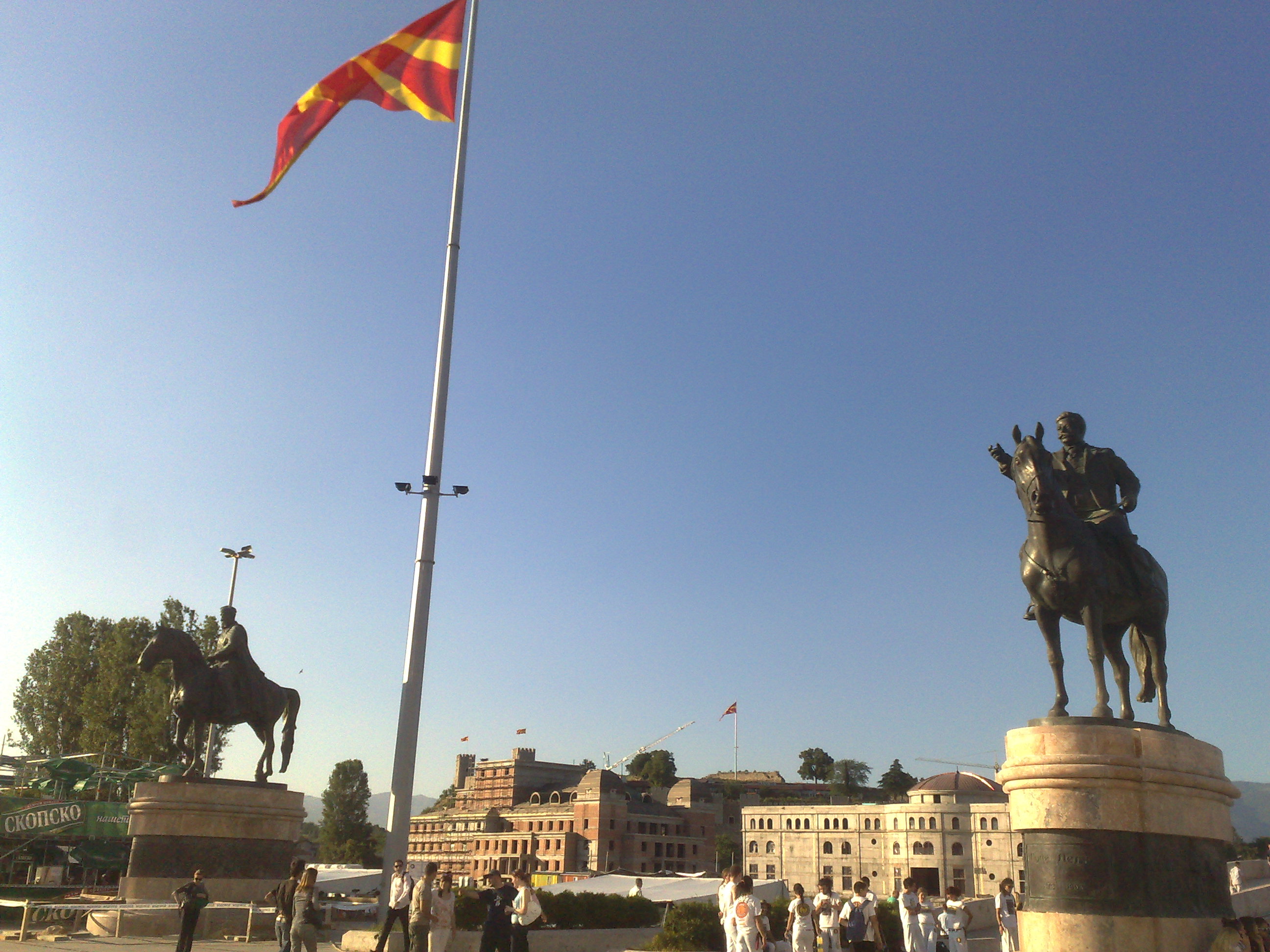 Besides being a costly enterprise in a country with limited resources, the project is also divisive and, as an Albanian friend told me, ‘provocative.’ The many monuments (three are already in place–one was put up as I visited Skopje) only celebrate the history of Macedonians (not to mention the ridiculous such as seeing Goce Delchev on a horse when he probably never rode a horse all his life). It is clearly an effort to engage in nation building for the majority, not to build bridges with the minority. The planned construction of a church on part of the main square symbolically asserts ownership of a civic site by one religious community. Ideas of also building a mosque is no remedy: it just suggests that identity is about choosing between one or the other, not a civic public space which atheists, Christians, Muslims and others can use jointly. Of course not only will minorities and civic minded Macedonians be alienated from the center. The planned statue of Alexander the Great is certainly not going to help in moving towards a solution in the name dispute (as have other provocative steps over recent years, such as the renaming of the highway and airport).